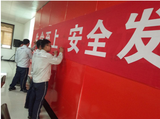 (5)公司安全誓詞:企業(yè)安全生產(chǎn)是我的崇高職責(zé),為了公司安全生產(chǎn),為了家庭幸福美滿,我們一定要做到“安全時刻在線,幸福相伴終生”,堅決履行自己的安全職責(zé),遵守安全操作規(guī)程、規(guī)章制度,自覺做到不傷害自己、不傷害他人、不被他人傷害;堅決完成安全生產(chǎn)任務(wù),做一名本質(zhì)安全型員工!