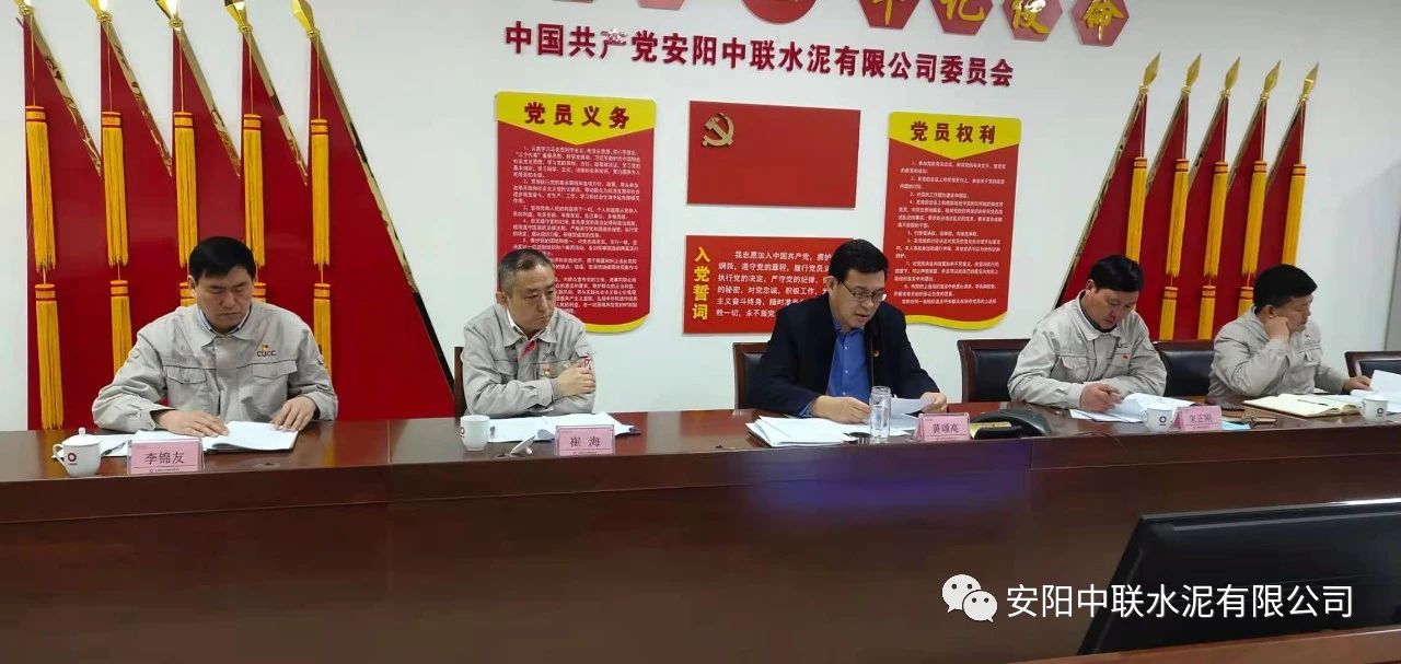 按照中國聯(lián)合水泥黨委關(guān)于認(rèn)真開好2020年度民主生活會(huì)通知要求,2月24日上午,安陽中聯(lián)2020年度黨員領(lǐng)導(dǎo)班子民主生活會(huì)在公司黨員活動(dòng)室召開。中國建材股份黨委常委、執(zhí)行董事、副總裁,中國聯(lián)合水泥黨委書記、董事長(zhǎng)崔星太通過視頻連線督導(dǎo)會(huì)議并作點(diǎn)評(píng)講話。中國聯(lián)合水泥黨群工作部主任侯萍、紀(jì)檢監(jiān)察室副主任董治及安陽中聯(lián)黨委委員、領(lǐng)導(dǎo)班子成員參加會(huì)議。安陽中聯(lián)黨委書記、總經(jīng)理黃頌高主持會(huì)議。